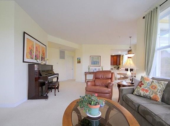 Fabulous main level condo offering a bright and open floor with sun-drenched rooms. Dining room w/French door leading to balcony and pass through into the kitchen. Solid surface counters, 42" cabinetry & recessed lighting in KIT. Master suite w/French door leading to balcony, walk-in closet & private bath w/soaking tub. Additional bedroom w/private entrance into hall bath. Laundry in unit. 2 spaces in garage.10+