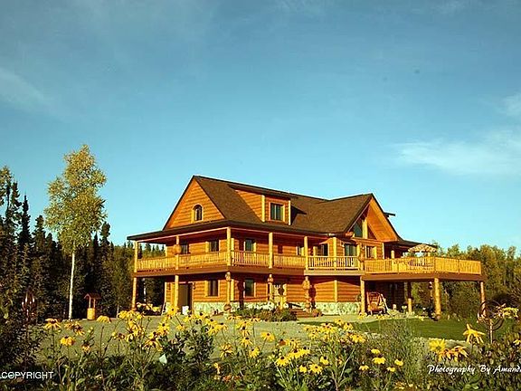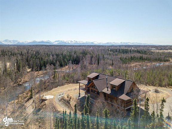 Completely turn-key! Custom log-sided home nestled on 10 acres of beautiful Alaskan wilderness along Meadow Creek with easy access to Parks Hwy (20 min from downtown Wasilla). 6 beds each w/ full bath, including jacuzzi and soaker tubs. Gourmet kitchen w/ Viking stove and farmhouse sink. Incredible views of creek, mountains, and wildlife from every room...