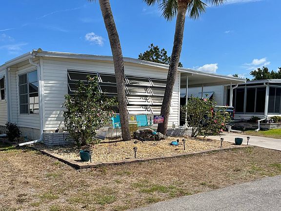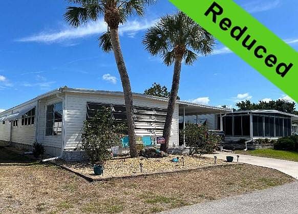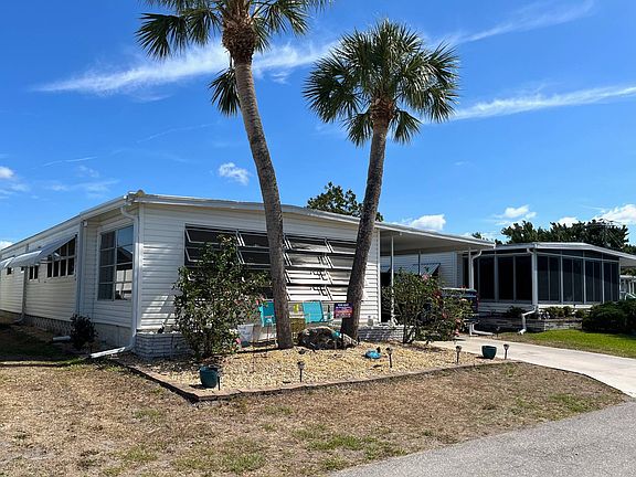 Introducing the perfect home with features on your wish list. To start there is the very sought after screened outdoor room that is sure to delight every buyer. Step into this beautiful space and immediately relax. The tile floors provide a cool and comfortable surface underfoot, while the ceiling fan with remote ensures a refreshing breeze on even the warmest of days. The double storage room is a homeowners dream, providing ample space for all your storage needs. The first room is a perfect laundry room with washer/dryer as well as additional shelving for essentials. The second room is the ideal spot for storing bikes, beach chairs and any other outdoor gear you may have plus tools. The Hot Water Heater is also here providing access for any maintenance needs. Step into the heart of the home and be greeted by a very efficient upgraded kitchen. The laminate countertops provide a sleek and modern look, while the stainless steel appliances add a touch of style. The gray cabinets are both chic and practical providing ample storage space above and below. The built in wine rack is perfect for the wine enthusiasts, allowing for easy storage and display of your favorite bottles. The double pantry and broom closet provide more space. You'll love the convenience and organization of these features. The mosaic tile backsplash adds a touch of color to the space while also making cleaning up a breeze. The spacious dining room is perfect with room to seat up to 8 guests. The new credenza is a great addition providing storage for dinnerware and linens. The soft close drawers make access easy while the glass display doors above allow for favorite glassware. The two living spaces provide perfect balance between relaxation and entertainment. First area is perfect for cozying up with a book or engaging in conversation. The second area is ideal for TV and watching sports. The front entrance porch leads to the lanai spanning the front of the home. The tile floor is practical, while the glass jalousie windows and screens allow for natural light and fresh air. The sun shades, levelor blinds and on sliders provide ample privacy and light control making this space a versatile area. This room is perfect for hosting extra guests with an added sleeper sofa. This home features both a guest room and a master ensuite, each with plenty of room. The guest room is perfect for your visitors space to accommodate a queen bed and double closets for storage. The guest bath has a tub with a shower, along with a linen closet and beadboard with chair rail. The vanity, sink and cabinet provide additional storage. The master bedroom has enough space for a king bed and two separate closets. The extra walkin closet is a bonus and the ensuite bath has a tiled stall shower with mosaic blue tile with more storage with the single sink and vanity. This immaculate 1973 home is 23 X 44 with a list of all new, maintenance free features include, all new double pane tilt sash windows, an all weather roof in 2018, new A/C, some ceiling fans on remote, waterproof vinyl plank flooring, new screens, new a kitchen door. There are also new 6" gutters and downspouts for keeping the rainwater away from the house. All this comes with any amenity you can think of to enjoy here in the 55+ Resort Community of Bay Indies. There are 3 pools, spas, tennis, pickleball, bocce, shuffleboard, corn hole, a kayak launch that leads out to Snook Haven to have lunch, 3 lakes for catch and release and plenty of places to just sit and relax while enjoying the swan and birds and fountains. Indoors there are numerous clubs, card games, trivia, bingo, gym, concerts series and scheduled dinners. Also around the park is a 3 mile walking and biking path. The historic town of Venice and beaches are 2 miles away with restaurants, shopping, outdoor concerts, cultural and art events, boating, golf and a farmers market. For those all important visits from friends and family there are 3 airports within close proximity.
