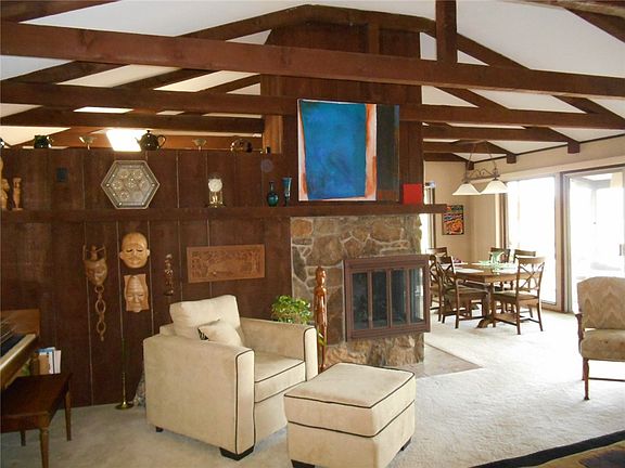 This is one of those homes you have to go inside to really appreciate. On the main level an open floor plan features exposed beams in the living, dining and kitchen areas lending a rustic, lake house feel, plus a two sided fireplace, large master suite w/ vaulted ceilings, family room and lots of glass all across the back showing off the stunning lake views. Two bedrooms, bath, den/office w/ fireplace, laundry and workshop are on lower level. Includes 2 slip private boat dock w/ 12' x 24' slips.