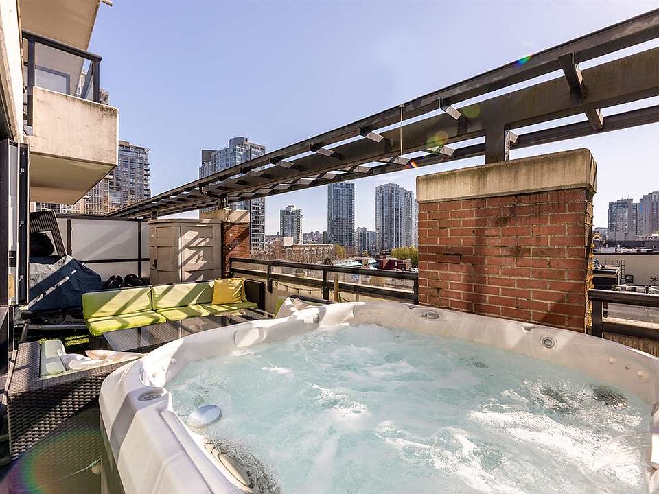 Your own private hot tub on a south facing patio in the heart Yaletown ? We've got the right thing for you just in time for patio season! This fantastic rarely available, first ever on market, 1 bed/1bath home with a functional open concept floorplan presents a large covered patio, perfect to entertain in style. Hop in your private hot-tub and soak in city views while sipping on a cold beverage or fire up the BBQ and enjoy al fresco dining. Large floor-to-ceiling windows bathe the interior in natural light and leave the living area bright and airy. Complete with parking and storage in a concrete building with pets and rentals allowed, residents are only steps from Yaletowns vibrant restaurants & shops, seawall & transit. Don't miss out on this incredible opportunity - This gem wont last!