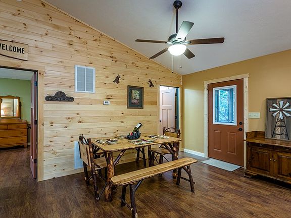 Come enjoy a rustic setting and charm, with modern beauty and amenities! Split bedroom plan places master bedroom suite with full bath on one end of the home, and two additional bedrooms, plus a full bath, on the opposite end! Gorgeous kitchen with island breakfast bar, granite counters, lovely backsplash, and eat-in area, open to a comfortable gathering room with wood panel walls and fireplace, all under a vaulted ceiling! Relax on cool evenings in the home's screened porch, offering two ceiling fans! New equipment storage building. Enjoy outdoor living space wrapped around this country home in a park-like setting! Friends are sure to love the amazing views as they travel to your home!