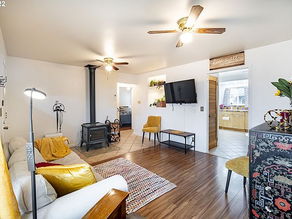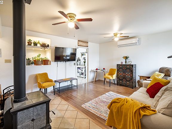 - Features: Ceiling Fan, Laminate Flooring, Tile Floor, Wood Stove