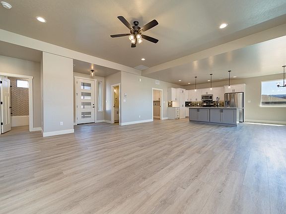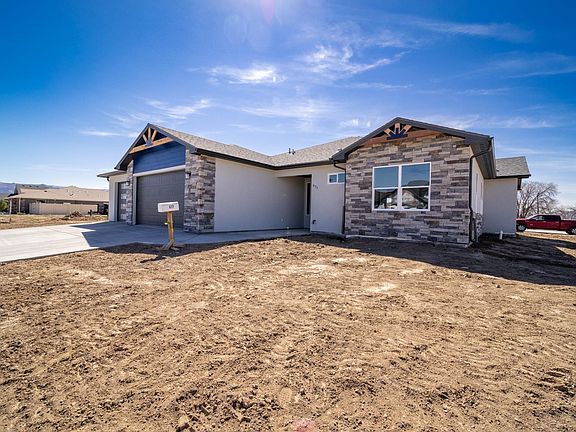 NEW CONSTRUCTION by Aspen Leaf Innovations in Orchard Ridge subdivision! This stately home features an open and inviting floor plan, quality constructed with 2x6 framing and energy efficient materials! Oversized 3-car garage and RV parking space on the large 0.27-acre corner lot allow for plenty of room for vehicle storage! As you enter through the charming front entrance, you're greeted by a light + bright living area, accented by 10' ceilings and a lovely electric fireplace, which adds additional warmth and ambiance to the elevated space. Open kitchen features upgraded cabinetry with undermount lighting, granite countertops, large center island, eat-in dining area and FULL APPLIANCE PACKAGE INSTALLED, including refrigerator!Large adjacent pantry space and access to laundry/mud room for convenience. Half bath near the living room for easy guest access! Bedroom/office tucked at the west end of the house is privately placed away from the other 3 bedrooms. Primary suite with features a LARGE walk-in closet, oversized walk-in shower with custom tile and glass door, dual vanities and a private lavatory room. Upgraded cabinets feature toe-kick undermount lighting as a unique feature! Two additional spacious bedrooms on the north side of the home with ample closet space and share a full bathroom with tile upgrades and tub/shower combo! Close to Downtown Fruita events, restaurants/breweries and shopping!