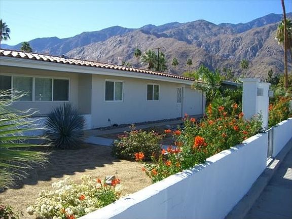 Charming three bedroom three bath home awaits you in Tahquitz River Estates. Southern exposure, newer salt water pool and spa with a raised outdoor fireplace and fantastic mountain views. Landscaping has been refreshed and is easy care low maintenance. Upgraded kitchen features cherry cabinetry, granite counters and stainless steel appliances. The bedrooms are large and spacious with a split floor plan design for privacy. Additional upgrades include energy efficient windows, air conditioning units and furnance. Several citrus trees including pink grapefruit. This home has a great layout, great location and is being offered at a GREAT price!