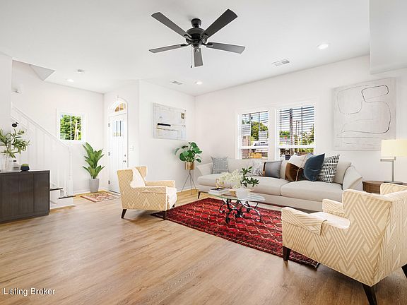 Welcome to 977 S. Shelby St in the heart of the growing Shelby Park area. This stunning two-story home is newly constructed to fit into its surroundings. It is walkable to Logan Street Market and lots of other restaurants and bars in Shelby Park. It is a short distance from Germantown, downtown, Nulu and Bardstown Rd. Entering the home, you will find a large great room/living/dining space. The house has 9-foot ceilings, so it makes the rooms feel especially spacious. There is a ½ bath off the dining area. The large kitchen boasts gorgeous quartz countertops in white with a grey vein throughout. There is tons of cabinet space as well as a huge pantry area and a separate washer dryer room with ample storage. Upstairs you will find 3 large bedrooms and 2 full baths. The bedroom at the front of the house is an en-suite and the bedroom to the rear has a balcony, that would be a great reading and sunning area or a private space to enjoy a lovely evening. All three bedrooms have ceiling fans to maximize air flow and comfort. Each bedroom contains plenty of closet space. The rear of the property has a privacy fence and an off-street parking pad. There is private parking on one side of the home and street parking in the front. The builder paid attention to details on the interior and exterior of the property and provides a one-year Builder's warranty to its buyer.