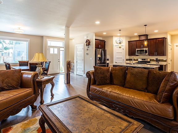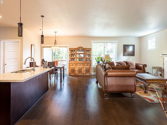 This lovely home offers so much! An open concept plan w/engineered hardwoods thru-out & gas fireplace. A kitchen w/island & eating bar, granite counters, pantry, 5 burner gas range. Downstairs bedroom can be office or guest room - a full bathroom next to it. Upstairs find a generous master & large bonus room/5th bedroom. Nice finishes abound! The 7200 sq ft lot has a fenced backyard w/deck, landscaped w/sprinkler system. Easy access to freeway, downtown Troutdale & Mt. Hood CC 5 minutes away!