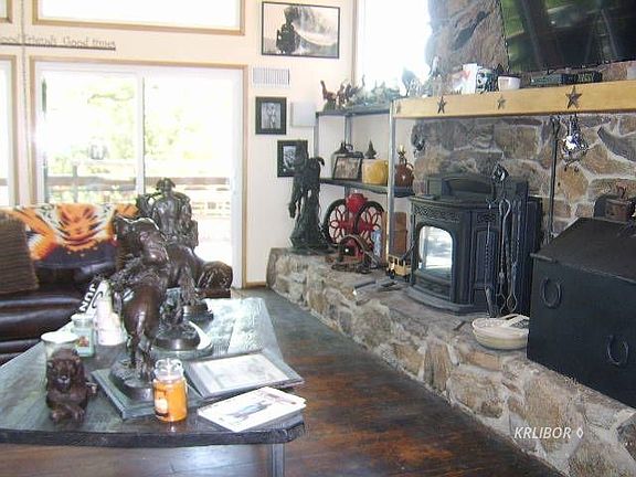 This may be just the home for you and your family. Located in a lush area of oaks, pines and privacy, sits this 2 story beautiful home! Featuring dual pane windows, fireplace of river rock, distressed wood floors in living room & dining room. Wide open floor space in living room & dining rm with floor to ceiling windows, ceiling fans, kitchen featuring glossy black tile counters and wrap around windows. Upgraded bathroom shower with tilework,. Stairway to upper floor featuring one of a kind staircase. And for ENTERTAINING, the "Barn" with ground level wet bar, pool table and a private bathroom. The upper level is a very large open living rm, and bedrm. Outside amongst the large Oak tree's is a "Tree house" with large deck, just right for the kids & grandkids! Outside there are 3 carports, 2 sea trains, and lots of areas on the property for other equipment, and the home has 1/2 interest with deed to the year round flowing spring!! Lot's of water for planting, gardening, making of ponds? This home has it all! An absolutely MUST SEE HOME!!