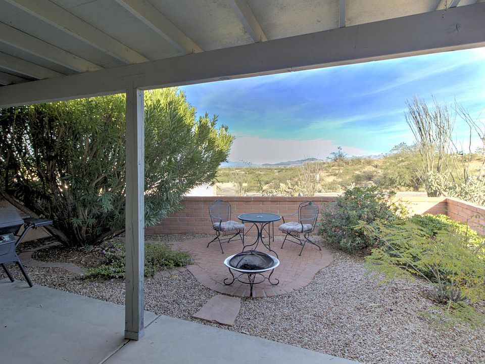 Move-in Ready Townhome in Beautiful Green Valley Arizona. This Town Home has Gorgeous views of the Santa Rita Mountains from your back patio, where you can relax with your morning cup watching the sunrise. Green Valley has many amenities to enjoy, including several golf courses and recreation centers, all within minutes of your home. This comfortable, bright Townhome has a spilt bedroom floor plan that gives you privacy from your guests, a walk-in closet in the large master bedroom, a ceiling fan in the dining room, and there is a complete furniture package available. The carport is Tandem for both your cars and or golf cart, and there is a large storage closet on the back patio as well. Don't miss this wonderful Townhome perfect for year round living or part time living.
