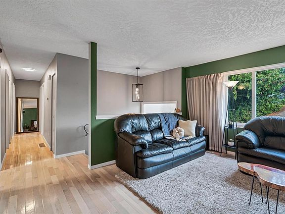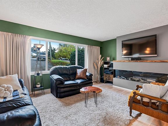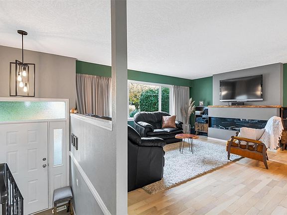 Langford, two level family home, quiet cul de sac, room for extended family/teenagers in walk out lower level. Close to Happy Valley Elementary School, park access, transit and shops. Well maintained 1970's home with vinyl windows, updated kitchen and bath, primary bedroom with 2 piece ensuite, forced air heating, hardwood floors through main areas, modern electric fireplace in living room and sliders from dining to newish deck with stairs to private tiered yard with mature trees and storage shed. Parking for 3 or more vehicles plus dedicated RV parking. Laundry on both main and lower level. Move in before Christmas!