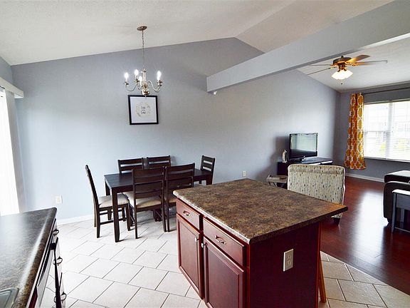 - Kitchen Features: Wood Cabinets, Ceramic Tile, Island, Walkout