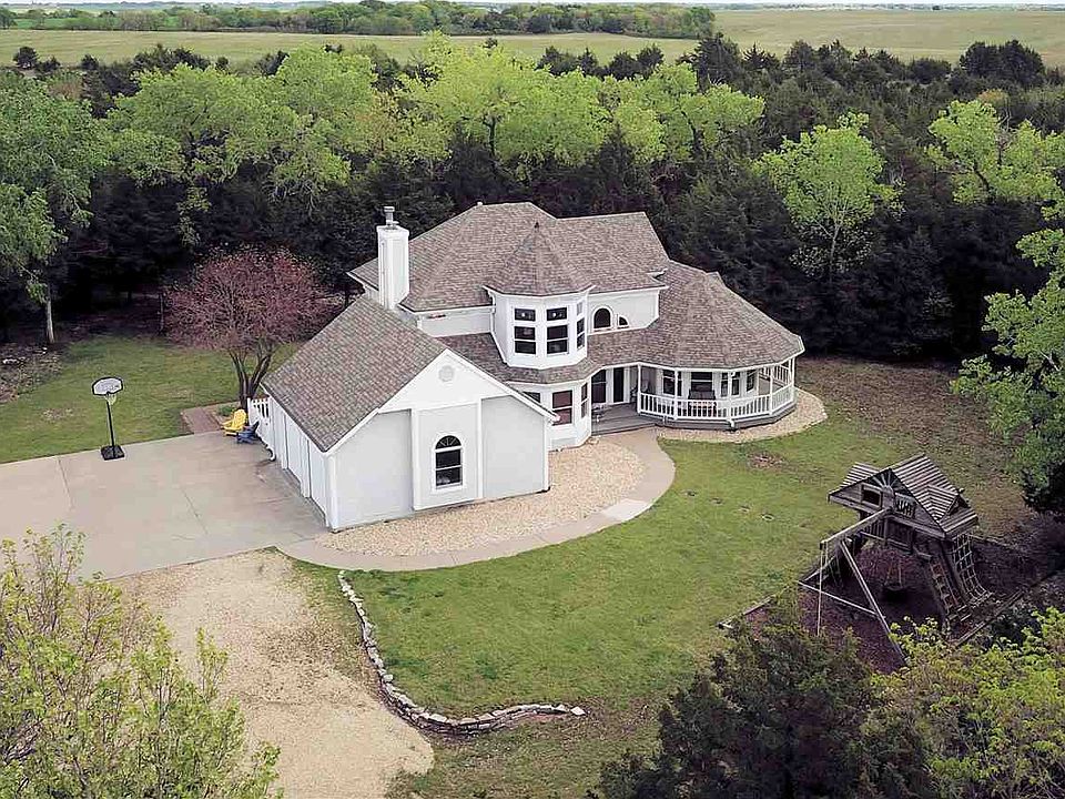 Adventure Trails on Over 20 acres of Motorcycle Trails and a thoroughly modern Queen Ann Victorian Style home makes life thrilling. True Gathering Place Kitchen/Family Room completely remodeled to enhance loved ones sharing and making memories, and when entertaining there is the additional abundant space in the formal living and dining rooms, home office, or lower level fun and games. After the fun, there are 4 bedrooms for catching some zzzzzs, 3.5 baths for refreshing, safe room and plenty of storage space. Custom built, just minutes away from Manhattan! Expansive 2 car attached garage with an additional 3 car detached garage/workshop. Think MotoCross!!
