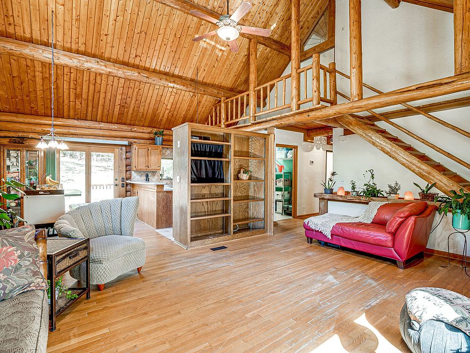 Location, Location, Secluded Log Cabin Retreat. Ponderosa Pine Logs, Oak Kitchen Cabinets, Corian Counter Tops, Laundry Chute, Balcony from Master Bedroom that was Remodel in 2020. Metal Roof 1/4 New Metal Roof in 2020 other 3/4 Metal roof 2012. Rec Room and Workshop in Basement Area. Walnut, Persimmon and Peach Trees on Property. Within one mile Grocery Stores, Restaurants, Drug Stores, Walking Trail and Owl Creek Park.
