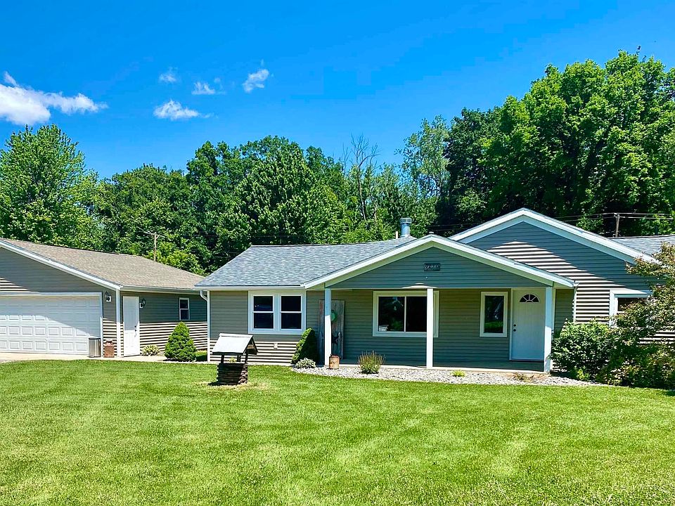Sprawling 2,120 sq ft., 5 bedroom, 3 bath, ranch home with oversized 3 car garage situated on over 1 acre in Freeland! This home has been completely updated and features an open concept layout. The kitchen has custom concrete and wood counter-tops, grey & white cabinets, white subway tile backsplash, new stainless-steel appliances, massive pantry and farmhouse stainless steel kitchen sink. The kitchen opens up to the dining room or living room, your choice and features a wood burning fireplace. Two bedrooms are separated by a full bathroom with tile shower. The master bedroom features a walk-in closet and full bathroom with walk-in shower and dual vanity sinks. The addition off the rear of home offers a vaulted great room with plenty of natural light and limitless options for entertaining. This space also features two more bedrooms, full bathroom with tile shower & large laundry room. The heated garage offers a raised bar with cabinets and counters, electrical, built-in shelving and storage space...it's a man cave dream! Updates in this home include: Roof 2021, Fireplace 2020, Furnace 2008, A/C 2011, Water Heater 2020, Water Softener 2012, Septic tank 2018, Blinds throughout 2021, Asphalt Drive 2021, Generator 2023 and updated plumbing and some electrical. This home has all the updates and character you're looking for! Schedule your private showing today!