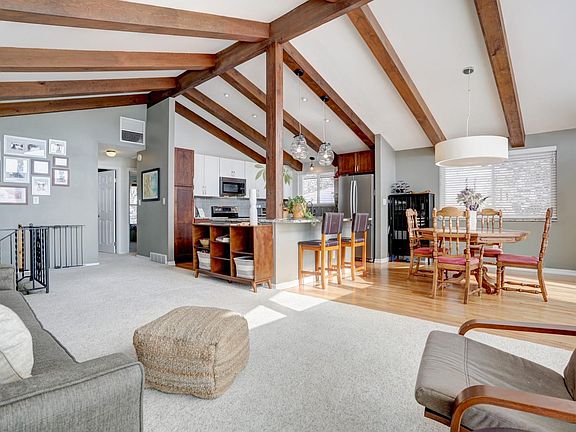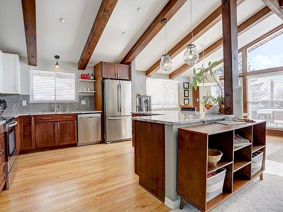 Striking, warm and in a fantastic location, this contemporary 4 bed/2 bath home makes you happy just walking in the cool front entry. Spacious and open with LIGHT pouring through every room. The kitchen just stuns -as do the wood beams in the adjoining family room w/ a large deck overlooking your awesome fenced lot. The lower level has a bonus fun room (Playroom/den/office anyone?) with a sliding glass door to your outdoor patio. At the base of the stair there's a nice laundry space and ?? bath. The Family room in the lower level is so nice w/ great space and warmth. Another large bedroom rounds out that level. PLUS! Everything is DONE. New furnace and new roof just move on in! Steps from the amazing ADDENBROOKE PARK (new playground coming), fitness center, and lake. It's a favorite of all! Best location with great schools, Belmar Shopping Center, shops, restaurants-you get all. The best part, you get this amazing home to live in, entertain in and love.