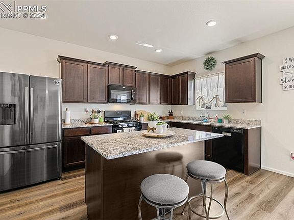 This stunning two-story home offers spacious living with four bedrooms, three bathrooms, a loft, and a bonus space ideal for a home office or a cozy front sitting area, providing versatility to suit your lifestyle needs. Boasting over 2400 sqft of living space, this meticulously maintained residence welcomes you with a warm ambiance and modern comforts. Step inside to discover a thoughtfully designed layout featuring an abundance of natural light and stylish finishes throughout. The heart of the home is the inviting kitchen, showcasing sleek granite countertops, ample cabinetry, and a convenient gas stove, making meal preparation a joy. Whether you're whipping up a quick breakfast or hosting a dinner party, this culinary space caters to every need. The spacious backyard offers a tranquil retreat, complete with a relaxing concrete patio and well-maintained grass, perfect for enjoying outdoor gatherings or simply unwinding after a long day. Fire up the grill and entertain guests while enjoying the beautiful Colorado weather. Conveniently located near an array of amenities, including shopping, dining, and entertainment options, this home also offers easy access to major military installations such as Fort Carson, Peterson Space Force Base, and the Colorado Springs Airport, making it an ideal choice for anyone seeking proximity to these facilities. Don't miss your opportunity to make this exceptional property your own. Schedule a showing today and experience the best of Colorado Springs living!