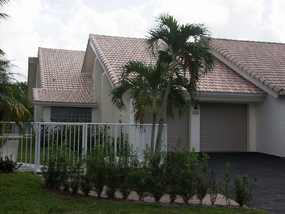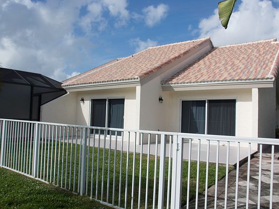 Move-in ready 2 bedroom, 2 bath villa in Villa San Remo. Admire lake views from your newly updated living room and master bedroom. Enjoy a modern master bathroom with double vanity, dry vanity, granite countertops and tiled shower. Renovated kitchen includes cherry cabinets, granite countertops, modern slate GE appliances including double oven. Exterior has new roof, new hurricane windows and garage doors, and new sprinkler system. Villa San Remo is a 24 hr guard-gated community with clubhouse gym and pool, jacuzzi, playground, tennis and basketball