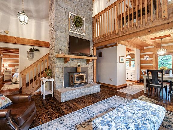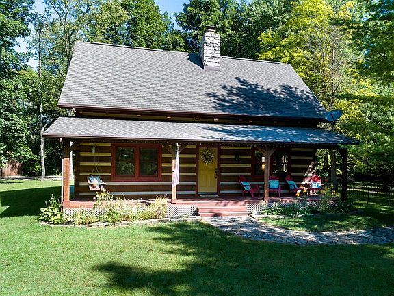 Welcome to this private peaceful log home on gated lot w/extensively fenced acreage, wildlife to enjoy, 5 car garage w/6 thick concrete flooring, & potting shed w/elec & wtr. Inside, thoughtful updates incl new kitchen counters, new lighting thru-out, updated baths & fin LL w/wet bar, kegerator & full bath. Perfect weekend retreat or country home!