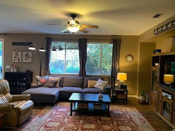 Beautiful 3 bed/2 bath home turn key and ready to move in. This lovely home has a spacious open floor plan in the kitchen/living room areas with wide hallways. The kitchen features a gas range, microwave, dishwasher and has plenty of space with the kitchen island. Extra wall shelves added. Pergo flooring in kitchen, living room, hall and entry aprox 4 years ago. The master bath features a walk-in shower with disabled handle. Large walk-in closet. Main bath features tub/shower combo with a window for extra light. The backyard has a shed with a swimming pool that seller can leave. Patio area for entertaining and garden area. Leased solar. Property Profile states 1,752 sq ft and sellers floor plans show 1,763 sq ft. Buyer to verify.