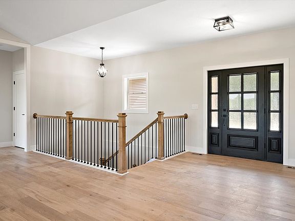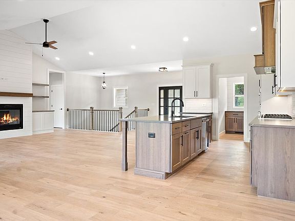 Step inside this custom new construction home and immediately fall in love. Every inch of this sprawling walk out ranch is more beautiful than the last. 5 bedrooms, covered porch, finished basement with a bar for entertaining, gorgeous kitchen and beautiful built-ins including a dream pantry. The 6,000 square foot side load garage is perfect for pickle ball, bating cages or storage it's complete with a back garage door for easy in and out of lawn equiptment or rec vehicles. Enjoy the beautiful stocked pond and 2 acre lot with breath taking views.
