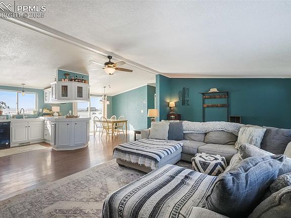 This beautiful ranch home offers main-level living on 6.4 flat acres with a fully fenced area & breathtaking views. Step inside to a spacious living room, perfect for relaxing or entertaining guests. The kitchen, featuring stainless steel appliances, including a gas stove (2023), refrigerator (2024), and dishwasher (2020). Painted cabinets and ample counter space complete the heart of the home. Throughout the house, updated light fixtures and ceiling fans add a modern touch. The primary bedroom features an attached bathroom and a walk-in closet. Two additional bedrooms, both with walk-in closets, share a full hallway bathroom, providing plenty of space for family or guests. Major updates include a new septic tank and leech field (2020), water heater (2023), roof and siding (2023) - ensuring peace of mind for years to come. The property is secured with gated entrances and is fully fenced, ideal for pets or livestock. A standout feature of this property is the impressive 40x50 detached garage/shop. It easily accommodates a variety of vehicles, with a 16' door on the RV side—perfect for fitting a dually truck and horse trailer—and a 12' door on the other side. Both doors have openers, and the shop is prewired for 220 power. Additional highlights include foam insulation, motion-sensor lights, and doors leading to both the back of the shop and a huge covered patio. The property backs to a private ranch, offering added seclusion - enjoy peaceful privacy while staying conveniently close to Fort Carson, just a 20 minute drive away. With ten raised garden beds, gate and run, fencing and chicken coop included, this property is ready for your animals or hobbies. Don’t miss this opportunity to own a slice of country paradise with modern comforts. Schedule your private tour today!