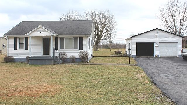 Outside city of Hopkinsville, 2 bedroom, 1 bath vinyl sided house with 24 x 24 detached garage. Very well kept lot, home and garage. Ready for a single person, a young married couple, or a perfect retirement home. Estate Sale.