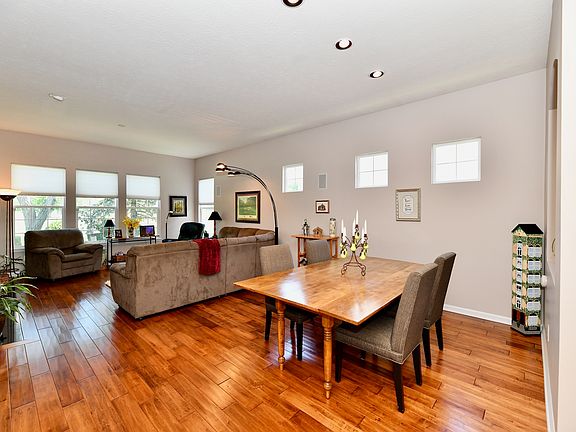 Located on Twin Lakes Golf Course this home offers an unparalleled view of the course. It's like the golf course is your own backyard. It has 2 bedrooms, 2 full-baths, an office/den, and loft w/HVAC above 2 car garage. Original owners who updated this home have taken exceptional care of it and the pride shows. The great room is open to the kitchen & dining area and features lots of windows, dual-sided see-thru fireplace, built-in cabinets. Mounted TV & surround sound in great room is included. Gleaming hardwood floors throughout the home, with carpet in bedrooms and office. The eat-in kitchen features granite counters, lots of cabinet space, a breakfast bar, 20 bottle Haier wine cooler, and is open to the back screened patio. Master bedroom has atrium doors opening to the back patio, plus the bath has dual sinks, custom cabinets, granite counter-tops, heated floors, large glass walk-in shower with dual shower heads/controls. Large back deck, slate patio, professional landscaping, roof new in 2013 with 6" gutters, Leaf Filter gutter protection, HVAC new in 2016, softener & conditioner new in 2022, tankless gas water new in 2013, ADT security system with video & all the extras, backup sump pump, heated floor in master bath. HOA has community pool and playground.