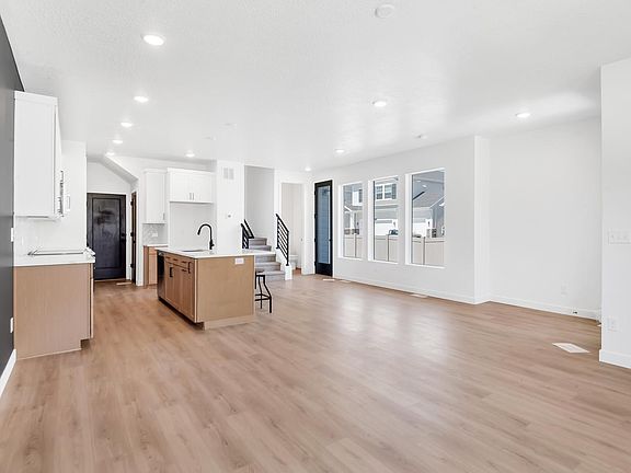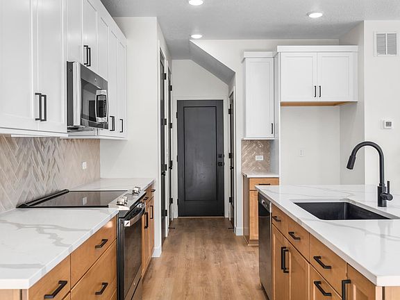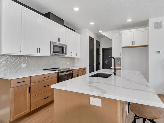 Home is currently occupied. This is a newer home in Ridgeview a brand new master-planned community in Highland. The kitchen showcases beautiful quartz countertops and stylish two-tone shaker-style cabinets. Luxury Vinyl Plank floors span the main floor. With designer tile and carpet, sleek black iron railing, and soft-close cabinet drawers. Oversized master bedroom and spacious master bath and closet. Tall energy-efficient windows, 9-foot ceilings, and end-of-row-lot bring a lot of natural light. Great side patio space, perfect for relaxation or entertaining. Fenced private yard and the Homeowners Association (HOA) takes care of yard maintenance, both inside and outside the fence. Lots of room for storage in unfinished basement. Two car garage.