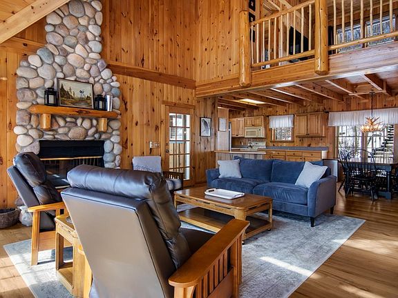 Water views & private direct frontage on the sandy shoreline of Bows Lake! Featuring a beautiful field stone fireplace, pinewood floors throughout, new refrigerator, projection unit for movie nights with lower & mid-level Sonos Speaker system. Fire pit/Dock/Kayak racks, detached 24x24 Garage, Central A/C & an automatic Generac backup generator included! Short term rentals allowed! Your peaceful & quiet Northern Michigan getaway awaits you...