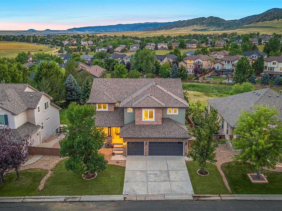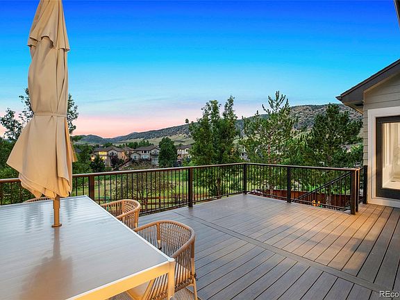 Backing to expansive open space with panoramic views of the foothills, this two-story sprawls over 4,500 square feet and features a gorgeous outdoor living space. The home welcomes you with vaulted ceilings and an abundance of natural lighting throughout! The main floor is oversized and includes a dining room and living room – both with impeccable mountain views. The open concept kitchen has plenty of cabinet space, beautiful countertops and new, premium appliances. Off the kitchen, enjoy the large family room with built-ins and additional views. Head outside where the entire backyard has been completely redesigned! The new, large deck is the best spot to enjoy the sunset views year round. The backyard offers privacy and is complete with fire pit and play areas. Just off the front of the house is a bedroom which can be utilized as an office space. Across the hall is a full bathroom which functions as your powder bath. Upstairs you’ll fall in love with the primary suite featuring mountain views, dual closets and a spacious five-piece bathroom. The three auxiliary bedrooms are well sized; one includes an on-suite bath and the other two share a full, hall bathroom. The walkout basement encompasses the entire footprint of the home. This unfinished space is the perfect opportunity to create a world that works for you and your loved ones. As you transition from the 3-car garage to your home, the laundry doubles as a mudroom. Recent updates include all new exterior and interior paint, luxury vinyl flooring and carpet. Additional upgrades include a new roof, radon system, sump pump with drain extension, steam humidifier, and new windows with warranty. The Trailmark neighborhood has a local park and events throughout the year. Enjoy peace and serenity while having everything you want and need just minutes away: King Soopers, Safeway, Chick-Fil-A, Kohl’s, Los Dos Potrillos, Texas Roadhouse, Chatfield Botanical Gardens, Reservoir and Dog Park.
