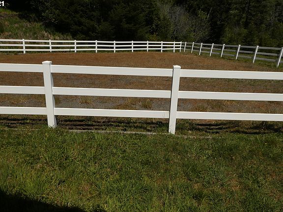 Check out the waterfall views from your back deck! This creek front property consists of 4 acres, the main house and garages, a 2 stall barn with tack room and 2 tie outs and an outdoor arena. Gorgeous established flowering trees and plants. Property borders both sides of the creek. Great split bedroom floorplan and both a living and family room to enjoy. Kitchen is spacious and has a large eat at counter plus a dining area. Fall asleep to the sounds of a babbling creek!