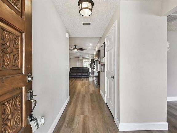 What you've been looking for! Location, Condition, Value- an excellent residence in the sought-after Blue Water Cove community. There were no flooding issues here with the 2024 storms and there are no HOA fees. This three bedroom, two bath corner lot home has been lovingly updated and has spacious outdoor spaces for relaxing and entertaining. Location is an easy drive to the sparkling sands of the Gulf beaches, Tampa, shopping and dining. Walk to the canal and drop in a hook and try your luck or pull your boat out from the backyard covered storage and head to Gulf. Your open kitchen, with breakfast bar has French door refrigerator, range, microwave and dishwasher. Washer and dryer are just steps away in the garage.
