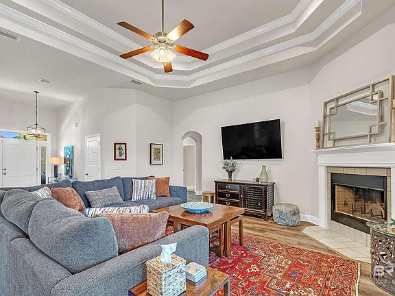 Welcome to this beautifully maintained 3-bedroom, 2-bath home on a spacious corner lot in the heart of Daphne, Alabama!This move-in ready brick home offers an open and inviting layout with high ceilings and a large living room featuring elegant tray ceilings and a cozy wood-burning fireplace, perfect for relaxing evenings at home. The kitchen is designed for both function and style, showcasing granite countertops throughout, a center island, breakfast area, and a separate formal dining room.The first-floor primary suite is a private retreat with tray ceilings, a walk-in closet, double vanity, soaking tub, and separate shower. Two additional bedrooms offer brand new carpet, while tile and luxury vinyl plank flooring run throughout the rest of the home.Enjoy the outdoors in your fully fenced backyard complete with a screened-in porch and extended patio. The front yard features an irrigation system for easy upkeep, and the home sits on a desirable corner lot with a 2-car garage.Additional highlights include a Gold Fortified roof, termite bond, ceiling fans in all bedrooms and living room, entire home painted in popular Incredible White, hurricane protection panels, living room and primary bedroom wall-mounted tvs (not warranted by seller) and an HVAC maintenance contract, providing added value and peace of mind.Located just minutes from parks, top-rated schools, and charming downtown Daphne, this home blends comfort, quality, and convenience. Schedule your showing today! Buyer to verify all information during due diligence.