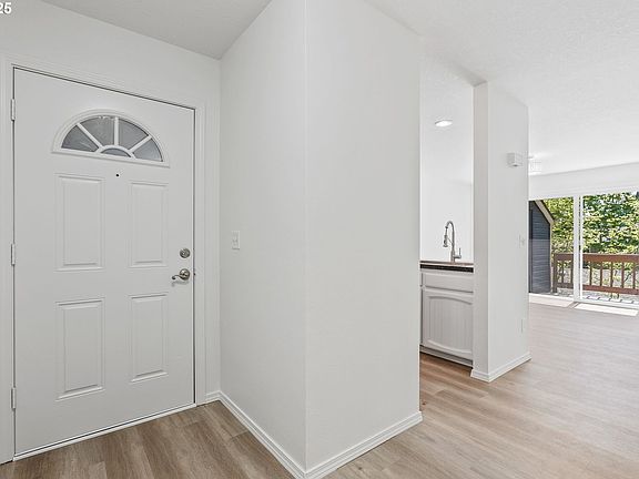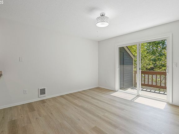 This move-in ready condo has so much to offer from the fantastic location to the tall ceilings and refreshed interior. Updates include paint for walls and cabinets as well as stylish LVP flooring and new Cadet heater. The kitchen has stainless-steel appliances, generous cabinet storage and an eat-at kitchen counter for added flexibility. There are two spacious bedrooms with ceiling fans and zonal heating. For added convenience, the home includes a washer as well as zonal wall heating. Off the living room is the slider door for access to the back patio deck with territorial views and additional storage closet. The unit comes with a deeded detached garage and a designated parking spot. HOA dues cover water, sewer, garbage, ground maintenance and common area lighting, including garages! This is all located within a few miles of the Tualatin Country Club, shopping, and delicious dining options. Don’t miss this opportunity!