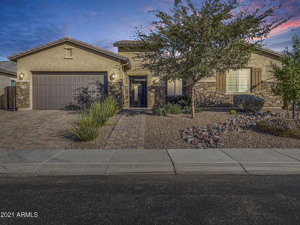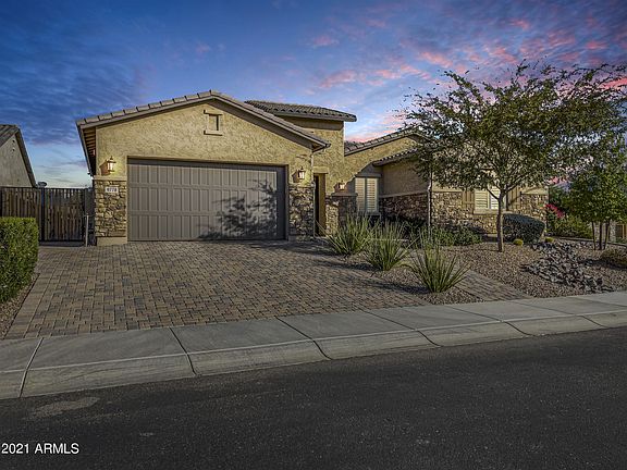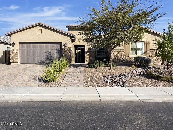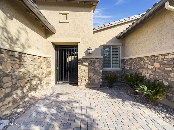 Prepare to be amazed by this absolute beautiful North Peoria single level home in the desirable gated community of Stonebridge Ranch. As soon as you walk through the private front courtyard you will enter this lovely, maintained home with an open floor plan that is perfect for entertaining. The gourmet kitchen offers an abundance of shaker style cabinets, Kitchen-Aid Stainless Steel Appliances, oversized kitchen island with a farm sink and a breakfast bar, gorgeous granite countertops and glass tile backsplash, and a huge family sized kitchen pantry. The home also features marvelous tile floors, high grade plantation shutters, 8 foot raised panel interior doors, neutral paint, walk in closets, a teen/bonus room with access to the gated front courtyard. The grandiose owner's suite boasts a