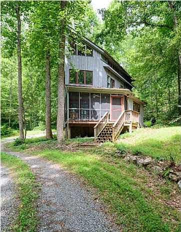 Very charming and unique home on secluded 11 acres with a private pond, 3 bay open shed or garage, and detached unfinished cottage. No power to the cottage, no finishes, just some framing and a screened porch, a blank slate? Inside there are 3 levels, all with bamboo flooring. first level enters at the front to a screened porch, and then passes into the living room with wood stove, open concept kitchen, powder room, and rear door where you can park and carry in groceries. 2nd level with contemporary railing along the stairs offers guest bedroom or home office with multiple windows (no closet in this room), spacious full bath with tub/shower and new tile, laundry. Up one more flight, whose stairs are lined from bottom to top with built in shelving, is a huge master bedroom, again, lots of natural light, walk in closet, and a 2nd quirky screened porch that has a tree house feel! Heat pump offers central heat and a/c, kitchen is furnished with all appliances, including microwave, dishwasher. Home is on well/septic, so no water bill. Fiber internet available. Tenant responsible for electricity, trash pick up. Owner will consider one pet on a case by case basis up to 25 lbs with $50 per month pet rent. Minimum income requirement. Strong credit a must. Contact Jinny Burns Burns Property Management Inc Licensed to Sell/Manage Real Estate in Virginia
