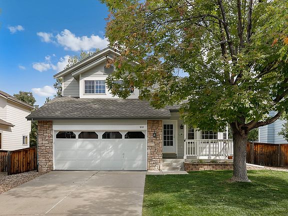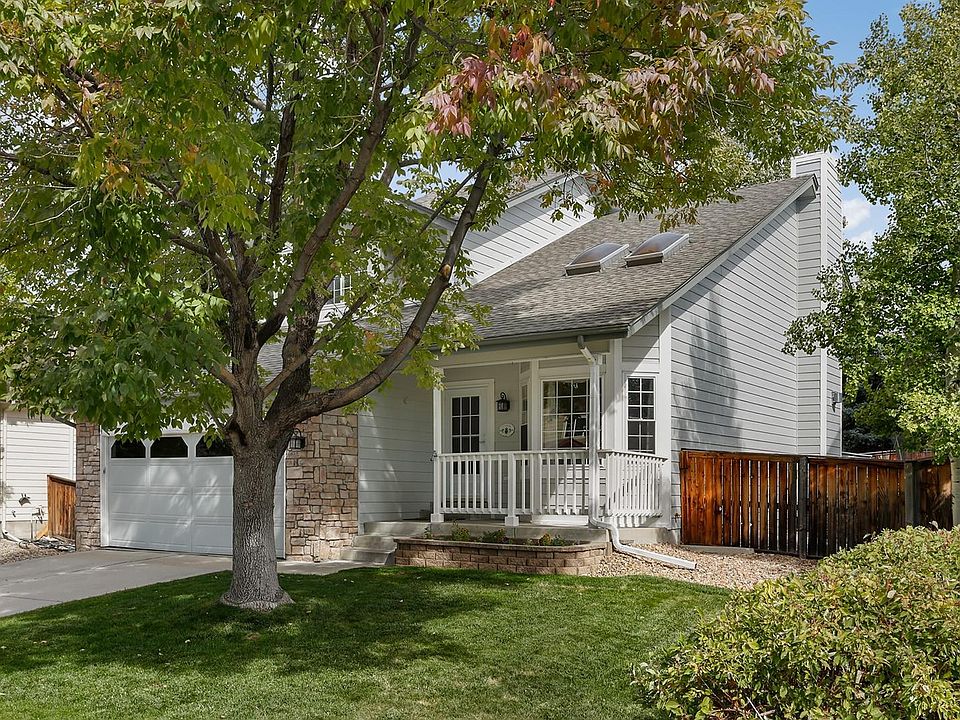 Lovely 2 story home w/ finished basement in quiet welcoming neighborhood, adjacent to cul-de-sac. The main level features a classic layout w/ formal dining space, beautiful high-end luxury vinyl floors, vaulted ceilings, skylights and large windows letting in brilliant natural light. Spacious, open kitchen with granite counters, tile backsplash, eating space, and tons of storage. Elegant master bedroom with vaulted ceilings, walk-in closet, and private ¾ bathroom with dual vanities. Both upstairs bedrooms are a very good size with great natural light and benched window seating area. Fully finished basement offers great additional livable square footage with family room, bedroom, ¾ bathroom, and laundry. You'll want to spend time in this amazing backyard, with mature landscaping, lawn, raised garden beds, and expansive deck with hot tub. Oversized garage w/ checkerboard tile flooring, work bench. Walk to Kistler Park and elementary school. Quick access to C-470, shops, & restaurants!