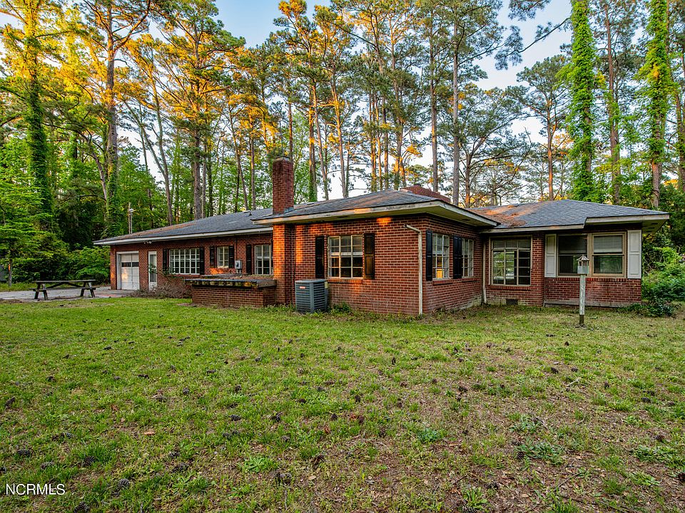 Rambling ranch on almost 2 acres. Built in 1954 this classic is located just outside of town limits but within walking/biking distance to all Manteo schools. The house has 3 bedrooms and one and a half baths along with a Florida room and an attached garage. Hardwood floors throughout and nostalgic charm make this a true diamond in the rough. Located on Hwy 64/264 the house is set back from the road and surrounded by mature pines and a few hardwoods. Lot size is just over 70,000 square feet and the the zoning is residential . House is being Sold AS IS septic replaced in 2009 and the HVAC is not preforming as efficiently as it should. Front of the property was maintained as a part of the Roanoke Island Corridor Commission. Several barns onsite which are not in good repair. Also onsite is a trailer which is not owned by the Seller.