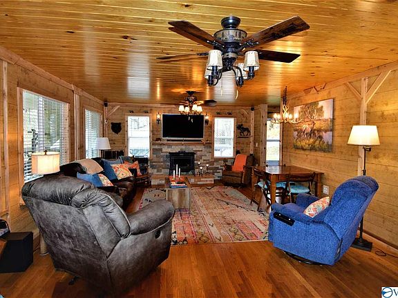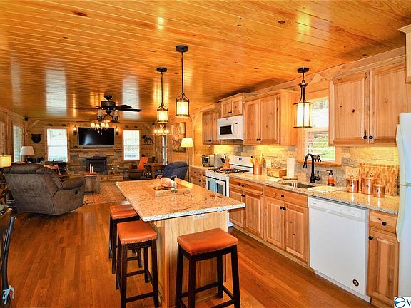 Make this your perfect gettaway or permanent home. This turn key property is located on beautiful Lake Logan in Ardmore TN. Just bring your cloths and enjoy the lake complete with boat house and boat. Home features, open livingroom and kitchen with spectacular views of the water. A spacious master bedroom with private bath, walk-in laundry. Exit just off the master to a large front porch, perfect for entertaining with plenty of outdoor furniture, and a hot tub. A detached covered carport with a workshop and generator.Private back deck perfect for grilling. Just up the walkway is a 1 room guest house perfect for overnight guest, plus a detached garage, and a ATV for riding the neighborhood.