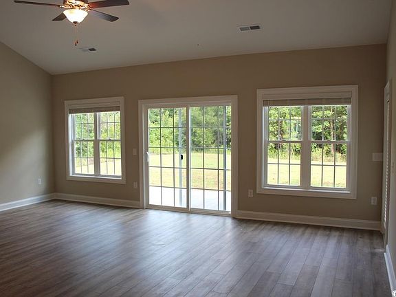 No HOA and No Restrictions. Spacious Hemlock Alt floor plan, entry foyer, relaxing front porch, extended 36' x 16' rear patio. Open floor plan, dining area has a tray ceiling, living room has a vaulted ceiling with ceiling fan, large kitchen has lots of custom-built white solid wood cabinets with crown molding and under cabinet LED lights. The breakfast bar is counter height with Quartz countertops, single bowl sink, stainless steel appliances – microwave, range, dishwasher, and a walk-in pantry closet. SS quiet power dishwasher and microwave to vent outside. Split bedrooms – Owner’s suite has a tray ceiling with ceiling fan, huge walk-in closet, double bowl sinks in a raised height vanity, shower and a whirlpool tub. Guest bedrooms and bath are on opposite side of the house. Guest bedrooms have ceiling fans also. Luxury vinyl plank flooring through out whole house. Beautiful 11' x 12' Carolina Room with a french door leading out from Living Room. Washer and Dryer connections. House is set back an additional 10 feet from the street. Finished and painted 2-car Garage has a keypad opener, pull down stairs to attic storage above, insulated ceiling along with insulated double door and sprayed radiant roof barrier. Exterior disconnect for future pool. Extra electrical outlets. Blind package included. Upgraded interior trim includes 3 1/4” window casings and 5 1/4” baseboards. Low E glass windows, energy efficient homes. Irrigation system, gutters, sodded and landscaped yard. Photos and video are for illustrative purposes only and maybe of similar home built elsewhere. Square footage is approximate and not guaranteed. Buyer is responsible for verification.