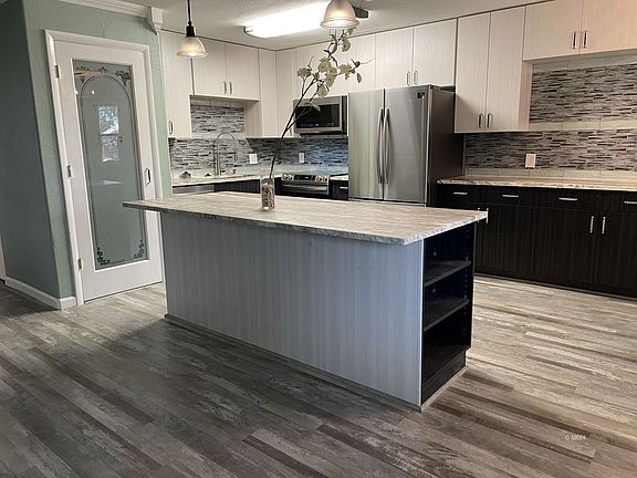 ONE OF A KIND! Upgrades galore! Grand Modern Kitchen Island! Beautiful and Serene park setting at the top of Rock Springs 2. Trees and lush landscape shade patio for optimal enjoyment! Interior upgrades are beautiful! Black and White Large Kitchen Island with Granite counters, glass tile back splash, stainless upgraded appliances, stainless custom faucet, walk in pantry, wood plank flooring, custom fans and light features, Contemporary Fireplace in Living Room. Bathrooms are beautifully upgraded as well! 20" White tiles trimmed with glass pencil tiles and custom glass bowl sink in guest and contemporary white rectangular sink in primary bathroom. Youre going to LOVE this location and all the upgrades! Great condition. SHADY PARK SETTING.