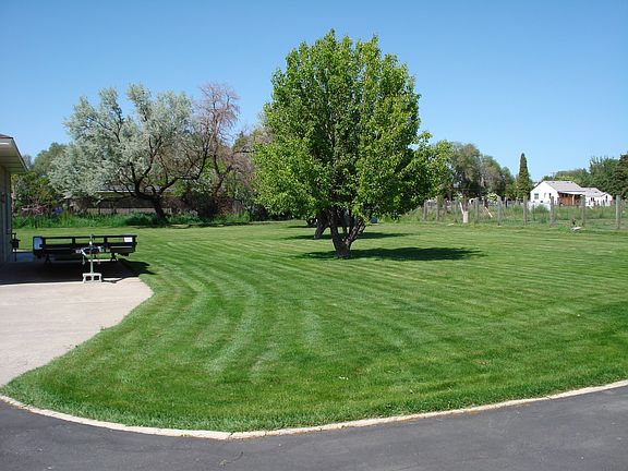 Just Reduced $70,000!!! Gorgeous flat setting with privacy fence, flood irrigation, shade and fruit trees, circular landscaped entrance. Major upgrade remodel home with super size master bedroom-bath. Could have two master bedrooms and baths. Incredible ceiling to floor windows with private entrance to front and back of home. Super matching 28'X34' shop with 2-9' doors, 2-220 outlets, architectural roof. Home has 11'X23' RV pad. Granite counters, new alder cabinets and steel appliances with gas range, recreation room with 10' ceiling, tile floors, incredible stone-rock-tile full bath down with heated floor, pool table stays. Utilities could be on the main floor. Has thermostat gas fireplace and heated vent on floor in kitchen.