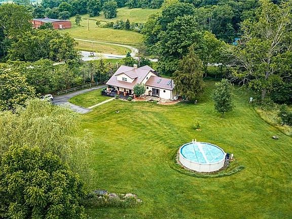 Welcome to this charming 1930s colonial farmhouse! This property has so much to offer, nestled on 6.6 acres with beautiful scenery everywhere you look. Enjoy the peace & quiet while having your perfect outdoor space. Above ground pool, 4 car garage equipped with workshop on second floor, covered back porch, large front porch & flagstone patio, what more could you ask for?! This will be the ultimate yard for summer, entertaining & outdoor enthusiasts. The inside boasts so much charm with PLENTY of entertaining space. Enjoy the addition of the massive family room with stunning vaulted ceilings, skylights & wood burner. It's the perfect space for cozying up in the colder months or simply adding to your entertaining space. Full bathroom was also added to the addition, perfect for guests. The bedrooms are spacious and the master has its own private balcony! Don't miss the chance to make this hidden gem your home! Check out the 360 tour for more viewing time.