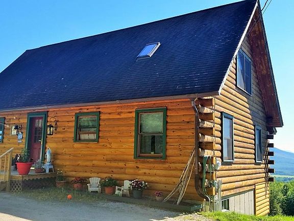 A writer's paradise ~ a poem in the making while immersed in the stunning beauty of the White Mountains without leaving home! Sit on the deck and hummingbirds will be flying about. This spectacular view is enjoyed inside and out. Amazing sunsets over Franconia Notch. Watch the cog making it's way up Mt. Washington. Play golf on your own land. Relax in this quality built log home with 3 levels of living. No creaking in this home ~ it's solid! Delicious drinking water! Finished walk out lower level with full bath, guest bedroom and huge family room. 3 BR septic system. Custom built garage/barn with a full second level ~ great for storage, an office, or man cave. Santa's Village is down the road, along with ski area choices, snowmobiling & hiking trails, swimming holes, fishing & hunting spots, theme parks, canopy tours, festivals, and Jericho Park which features miles of ATV fun. ~ all that is in the heart of the White Mountains. So many fantastic activities. Sweeping views from Mt. Washington to Franconia Notch and beyond. Ever changing skies create wonder filled scenes. Plenty of room to expand. Great rental property for North Country visitors in between your own visits or make this your permanent home. Enjoy barbecues, bonfires, songs, and conversation around a fire. Drink in stunning views during the day and the star filled skies at night. Begin building your own White Mountain adventure and incredible memories in this special and unique log home.