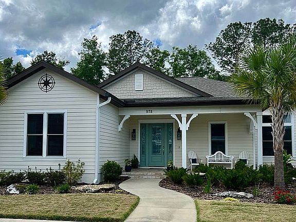 OPEN AND BRIGHT CUSTOM RANCH with OVERSIZED ROOMS, no carpeting, high ceilings, 4 BED/OFFICE, 3 FULL BATHS, 3 CAR GARAGE (plus golf cart space) fenced, wooded, no backyard neighbors! on irrigated premium lot, minimal yard maintenance. LARGE GREAT ROOM with 12' beamed ceiling, SPACIOUS DINING ROOM, Upgraded cabinetry and Bosch appliances in HUGE KITCHEN. Luxury MASTER ENSUITE with tray ceiling, DOUBLE VANITY BATH with two shower heads, TWO ENORMOUS WALK-IN CLOSETS. BIG SECONDARY BEDROOMS with double sink bath. Large, tiled, SEMI-ENCLOSED BACK PORCH with POWER SCREENS and OUTDOOR KITCHEN. Big OFFICE with BUILT-INS, plus SECOND OFFICE AREA off kitchen.