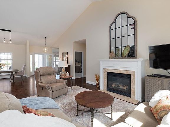 This home is lovely inside and out. Located in the Southern Hills subdivision of The Legends, it boasts 4 bedrooms and 3.5 baths. Enter through the beautiful leaded front door into a bright and open floor plan with glowing wood floors. Lots of light with a wall of windows and vaulted ceilings. The gas fireplace makes it cozy in the winter. The kitchen features beautiful granite counters, SS appliances, gas oven/stove. It has a large breakfast bar and a built-in planning desk. Sliding doors in the breakfast room lead to a cedar deck. The master suite has a dressing area, custom walk-in closet, and luxury bath. Your family will have lots of fun in the finished LL. Large movie area and shuffleboard in the rec room with a wet bar. A private bedroom and full bath complete the lower level. Other features include a sprinkler system, water softener, large fenced yard. Subdivision pool, tennis courts, and playground.