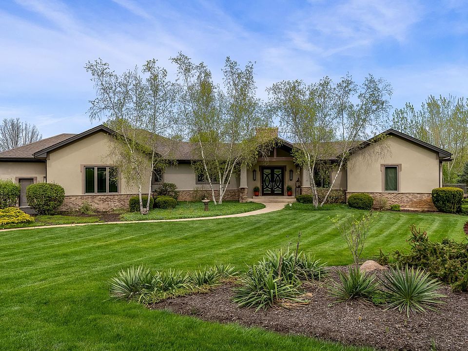 The dream home you have been waiting for is now available! Custom designed by a Chicago architect (Richard Knorr of RKI International) and built to perfection by Ron Beard, this fully exposed ranch-style home offers over 6,200 sq. ft. of total living space! The open floor plan, soaring ceilings, and walls of windows enhance the spacious yet comfortable feel of this home. Tucked away on a quiet cul-de-sac in Boone County this 3.85-acre lot is the epitome of picturesque privacy. The original plans had the option of a pool in the yard so it can be added without disrupting the landscape and septic system. The first impression is of the dramatic front porch and double glass front doors that open to a charming foyer and a sitting area around the focal point which is the stone gas fireplace. To the left is the enormous kitchen with a two-tiered center island, 2 sinks, custom maple cabinets with pull-outs, double garbage cans, a 5-burner gas cooktop (new 2020), a new dishwasher (2022), convection/microwave area and a wall oven. The kitchen flows to the deck where the grill is plumbed with natural gas. The walk-in pantry, laundry room, and family powder room are off the kitchen. The two guest bedrooms on that wing of the house have large wall closets with organizers and share a Jack-n-Jill bath with double sinks and a separate room for a shower and stool. To the right of the fireplace is the light and bright living room featuring a wall of windows overlooking the rear yard with access to the expansive deck through patio doors. The guest powder room is just off the hallway to the main suite. The whole side of the home is the main bedroom, bath, and two walk-in closets. The bedroom has double doors to a private area of the deck perfect for enjoying coffee in the morning or a cocktail in the evening. The bathroom has a large walk-in tiled shower, double sinks, a Jacuzzi tub and tons of storage. The curved dining room with spectacular views completes the main-level living area. The lower-level was completed by Ron Beard and matches the main floor with regards to the white woodwork, doors and finishes. There are two bedrooms and a shared Jack-n-Jill bath directly under the upstairs guest rooms and bath. The living space is wide open and has the potential of a wet bar as the water is plumbed in already. There is also another full bath, a small garage ideal for lawn equipment, a mechanical room used as a home gym, and two storage areas. The outside space includes a covered patio. This 2004 Parade Home has everything you would imagine on a gorgeous lot with a creek and woods. Call today for your private showing.