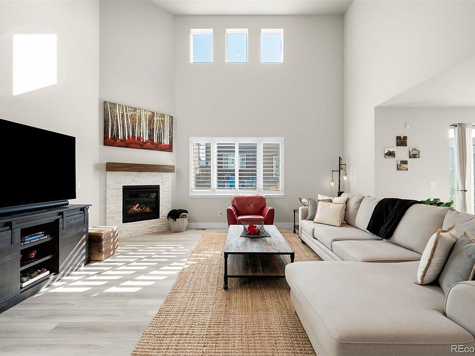 Ascend the welcoming, elevated front porch of 9780 Banner Peak and step into one of Sterling Ranch’s most coveted floorplans. Built in 2022 and meticulously maintained, this residence combines thoughtful design and everyday functionality. At its heart, a soaring two-story living room with vaulted ceilings creates an airy, light-filled gathering space, an uncommon feature within the community. The main level includes a dedicated office with glass French doors, ideal for remote work, as well as an adjacent powder bath for added convenience. Upstairs, a versatile loft overlooks the great room, complementing three spacious bedrooms. The primary suite offers a serene retreat with an ensuite bath featuring dual vanities, a soaking tub, and a separate shower, along with a generous walk-in closet. Two additional bedrooms share a full bath. An upper-level laundry room enhances everyday ease. The unfinished basement offers abundant potential, whether envisioned as future living space, a home gym, or simply ample storage. The outdoor space is designed for effortless enjoyment. Professionally xeriscaped landscaping means no maintenance is required, simply step outside and enjoy the setting without lifting a finger. A private patio provides the perfect backdrop for morning coffee, evening gatherings, or relaxed weekends, all framed by west-facing mountain views that capture Colorado’s dramatic sunsets. Nestled within Sterling Ranch, a master-planned community in Douglas County, this home provides access to nine villages, miles of trails, open space, and thoughtful amenities, from a community coffeehouse to a recreation center. Perfectly situated near Colorado’s state parks and natural foothills, the setting blends modern convenience with outdoor living.