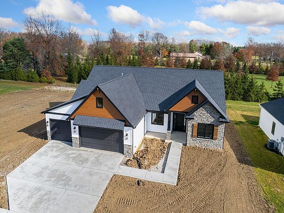 Open House SATURDAYS FROM 1-3PM **Luxurious Star Homes Masterpiece in Orchard Hills** Tucked away in the tranquil countryside of Northeast Fort Wayne, this stunning Star Homes by Delagrange and Richhart Inc. creation epitomizes modern elegance and timeless appeal. Located in the prestigious Orchard Hills community, just minutes from Cherry Hill Golf Course (5 mins) & Cedarville Reservoir (7 Mins) this 2,087 sq. ft. masterpiece boasts 3 bedrooms, 2.5 baths, and exceptional design details that set it apart. From the moment you arrive, the home’s cultured stone façade, painted cedar accents, pent garage roof, & cedar-stained shutters create a striking visual, complemented by noir window muttons and a refined color palette. This home exudes sophistication with an approachable charm. Step inside the Avalon-inspired floor plan, where an impressive foyer with three elegant arched entryways sets the tone for the craftsmanship that awaits. The first archway leads to a private guest suite, offering comfort & privacy, while the second opens to a versatile space ideal as a bedroom, office, or den, complete with double doors, a full closet, & abundant natural light. The great room is a showstopper, featuring oversized Andersen windows that flood the space with natural light, a gas fireplace adorned with exquisite tile, & a sleek ceiling fan. Adjacent to the gathering area, through the third archway, is the dining area & kitchen. This gourmet kitchen is a chef’s dream, boasting premium Delagrange cabinetry, quartz countertops, a breakfast bar, floating shelves, & large windows that frame picturesque views of the pine-tree-lined backyard. Triple patio doors connect the space to two outdoor patios, perfect for serene outdoor living. The primary suite is a luxurious retreat, showcasing a vaulted ceiling with a fluted chandelier and a double-tiered 12-foot closet. The spa-inspired bath features herringbone tile flooring, an oversized quartz vanity, custom cabinetry, elegant wall sconces, & a zero-threshold tiled shower with a bench seat. A private water closet completes this indulgent space. Additional highlights include a custom mudroom with wood benches, a bespoke half bath, and a spacious laundry room, all designed with practicality and style in mind. With over 60 years of experience, Star Homes continues to deliver luxury & quality, 9780 Orchard Hills is no exception. Discover the lifestyle you deserve & schedule your showing today.