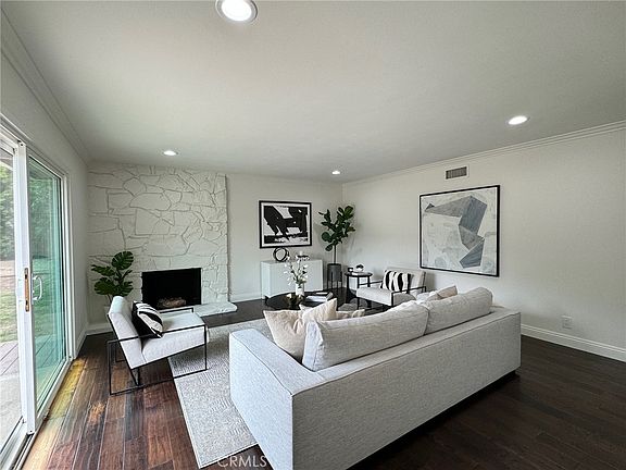 Rare Find! This lovely upgraded 4 Bed / 2.5 path sprawling single story, 1,860 sqft home is located on and extra large (8,000 sqft) Lot in a highly sought-after neighborhood with all award winning schools. Enter this turnkey Beauty through a newly painted entry door to the foyer and seamless flow to the living room with fireplace, adjacent dining room, and gourmet kitchen - all open to one another, great room style. The kitchen offers granite countertops, new LG dishwasher and stove. The kitchen and entire great room overlook the amazing backyard that's ready for entertaining. The spacious primary suite has a huge walk in shower, new vanity with dual sinks, designer mirrors and fixtures. The gorgeous remodeled guest bathroom offers new vanity with dual sinks and tub/shower combo. Other features include newer central A/C, engineered hardwood Flooring, extensive recessed lighting, dual pane windows and sliders, and smooth ceilings. This Wonderful Home also has a sizable inside laundry room and a half bath for convenience. Large RV Access. This outstanding home is close to shopping, restaurants, award winning schools, parks, beach, and easy freeway access.
